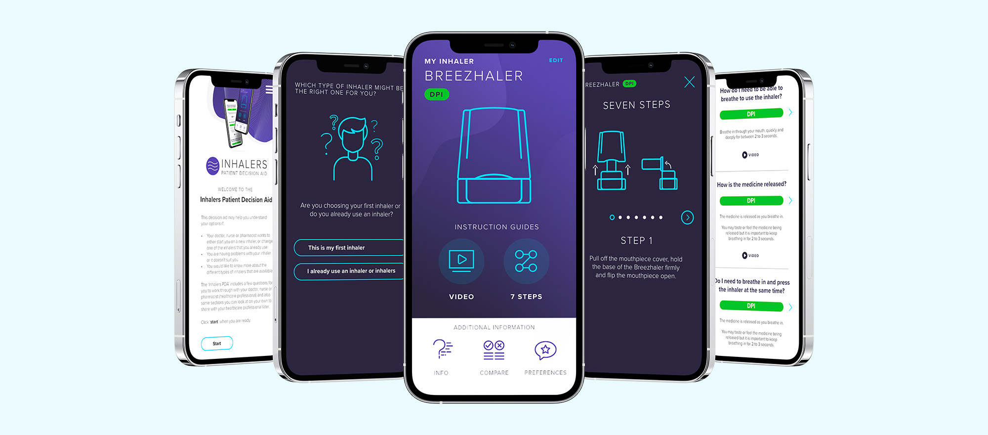 Based on the Inhalers for Asthma Patient Decision Aid developed by NICE, this PDA is designed to help people with asthma/COPD and their healthcare professional discuss the different inhaler devices that are available to them. Fully interactive, the PDA provides dynamic assessments of inspiratory flow, graphical and video presentations (Asthma UK) of good inhaler technique, comparisons between different types of inhaler and also, facilitates discussion about a patient’s personal preferences and priorities.